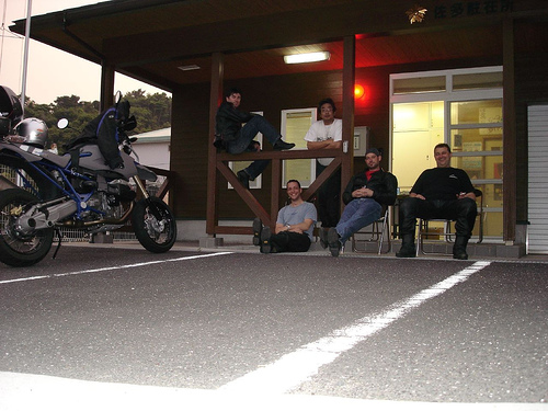 By the time we got into Arisoumi distance, time and speed had broken us up. James, Tony and myself were making good progress together while Ide and Michel were a little way behind. Ide did an F1 fuel stop and headed on out before us, while Michel came in as we were on the way out. I was starving and snuck in a quick bowl of ramen. I don’t know if it was highway fever or a local dialect thing, but the old lady at the counter seamed to be speaking gibberish. She had to tell me about 10 times before I got it. Imagine her surprise when another foreigner, Michel, rocks in 10min later and has the same problem. All at around half seven in the morning.