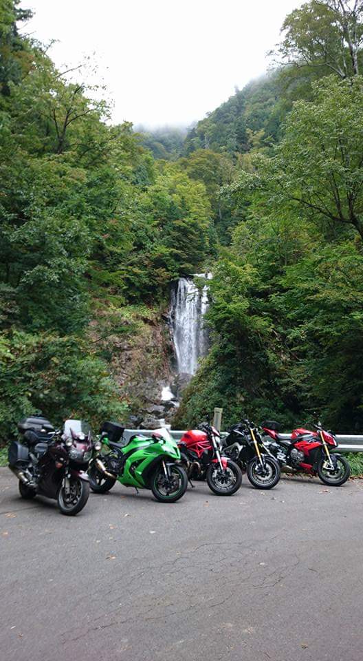 Up on the road through Amo Touge stopped by one of the several waterfalls, it is an attractive ride. But this is a flattering angle…