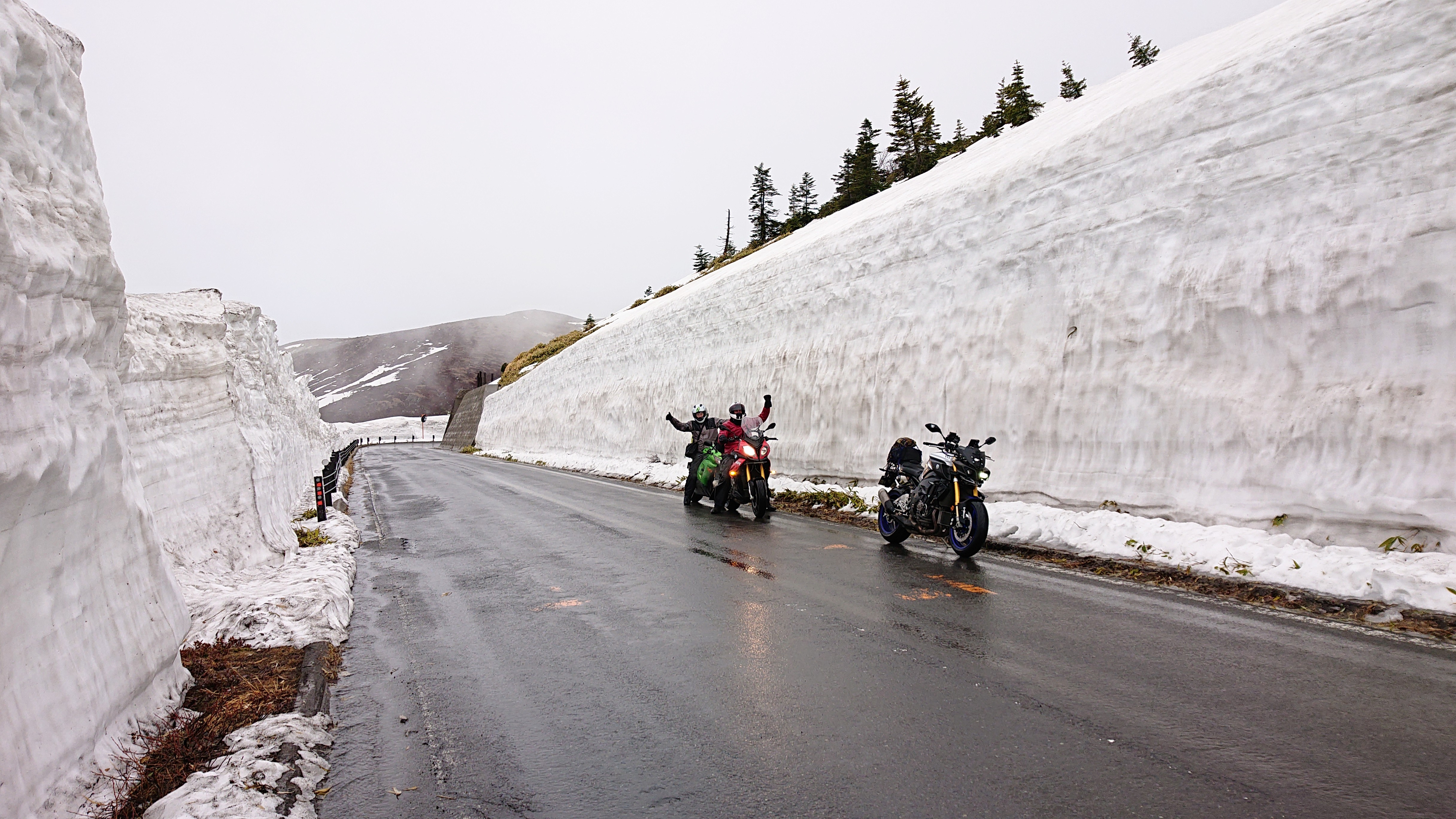 Gear on and feeling warmer with every rev, we picked up Tony and his green machine then made the final switchback twist up the snow covered mountainside to the Shiga-Kusatsu road. Japan’s highest national road, peaking at 2127 metres.