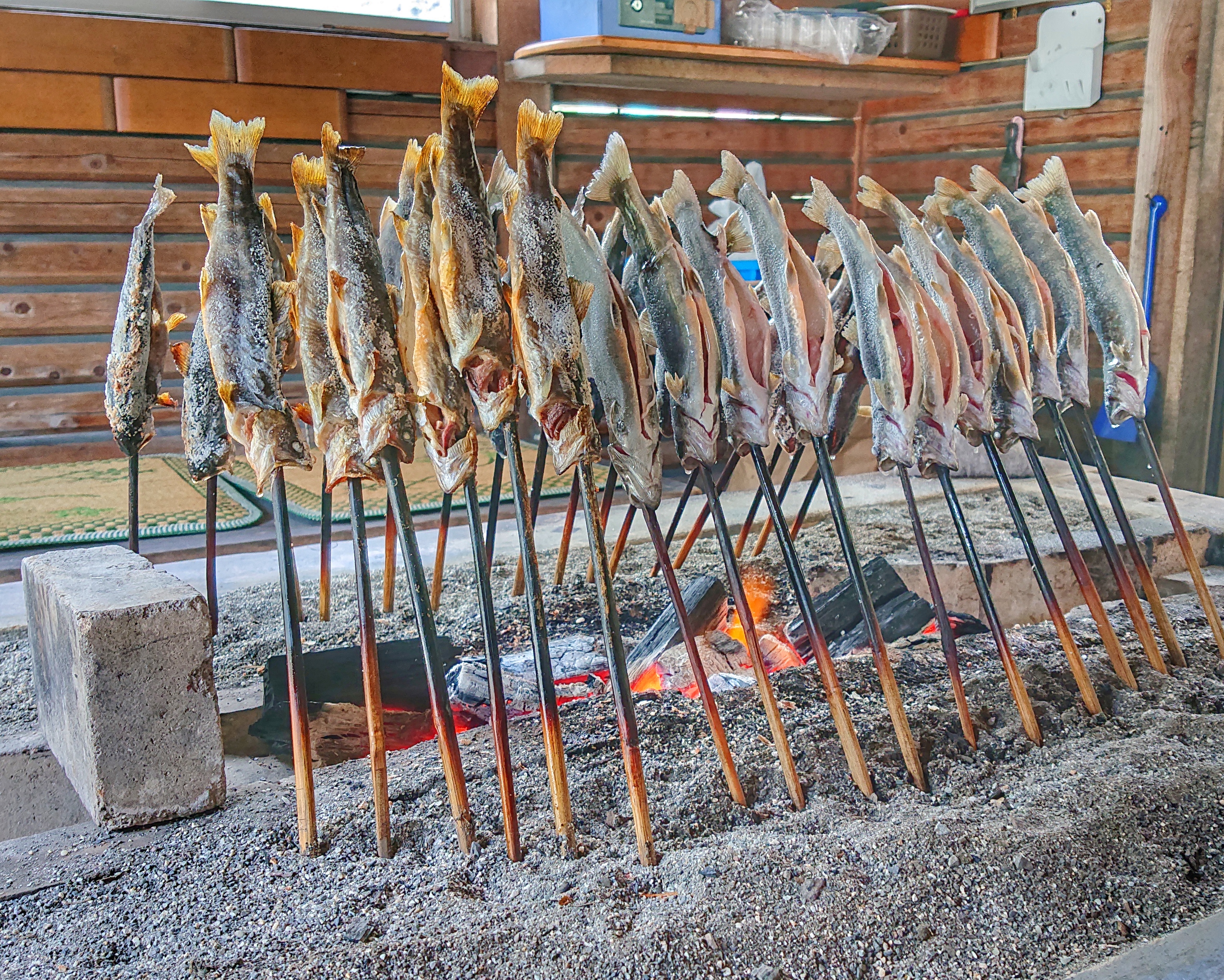The 361 was a treat once again but a little of its character seems to disappear every year as more and more bypasses are added. Still a fun workout though and just before Kiso, we pulled in for a coffee and rest. And something smelt good!