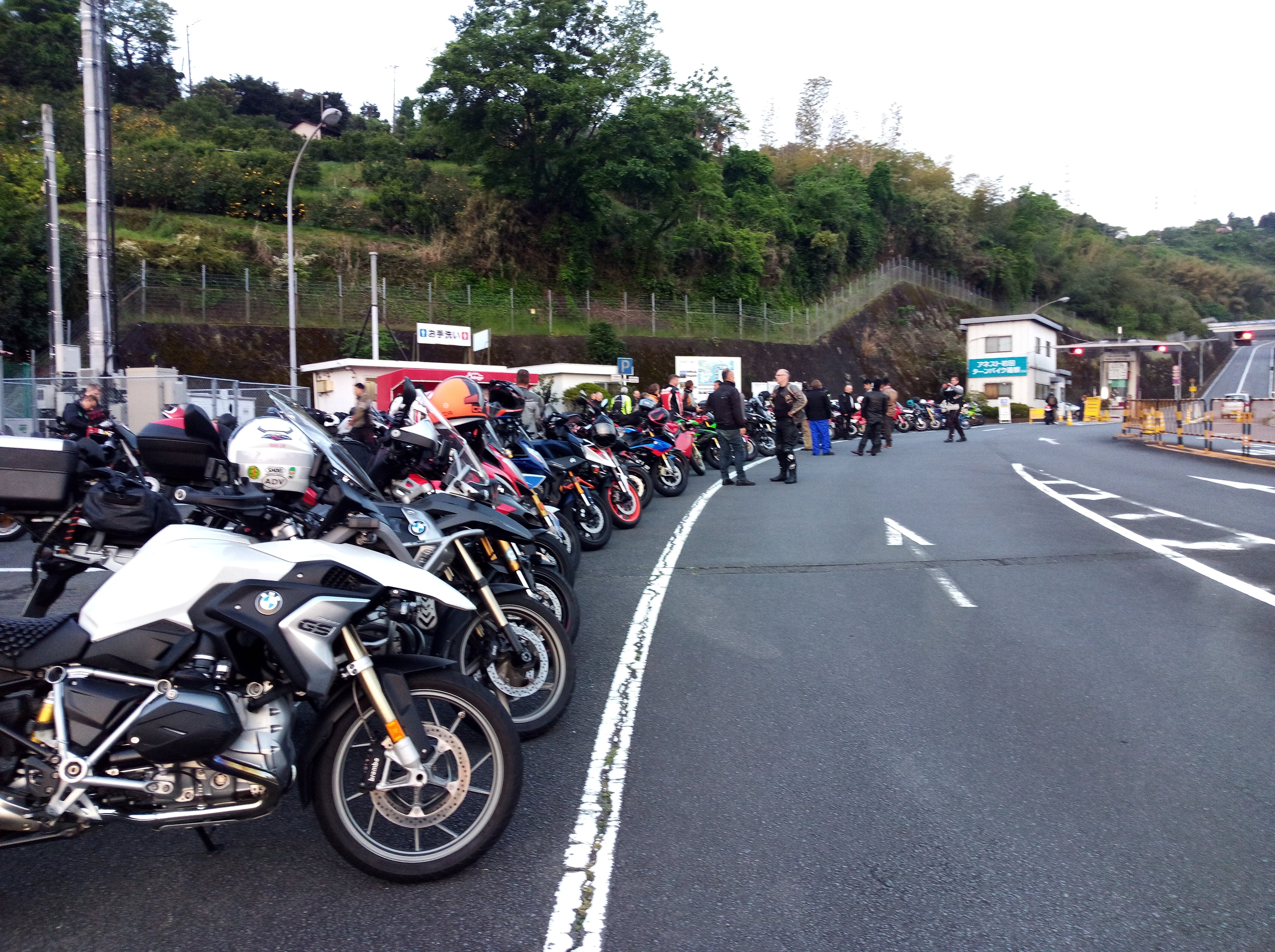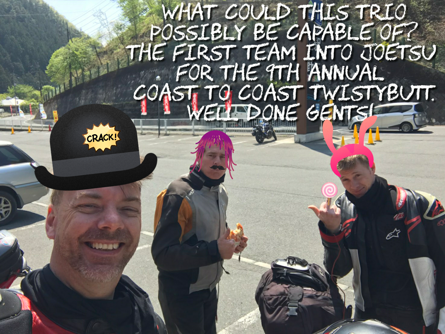 Blasting through a subterranean valley to valley wormhole, loving the thrum of the MT10 crossplane rattling the tiles on the tunnel wall, I realized I’d completely missed the turnoff for the snaking touge overhead and as a result had lopped off around 20km of the C2C500 route! Doh! It was time for a pitstop and refocus. The riverside here did the trick. 👍Head back on straight, no time for photos and deciding to try and catch one pack or another doing the same route, the tyres stayed medium-well done all the way till Asama yama was in the mirrors and my furnace needed fuelling. Still hadn’t seen anyone I recognised but it was lunch time.On the road again headed for the Tsumagoi Panorama Line with the bike and belly full, the Touge Express was ready to rock again! But, within 300m, the grey sky turned black and a chill took the air.Ouch! Took a hard hit to the knee… Bug? Maybe. Ping-tock-ouch! Something bounced off the tank, hit the bottom of my helmet and jammed in between my neck and collar. And it burned till I dug it out! Then the heavens opened and grape-sized hail was bouncing around everywhere. Luckily, across the way there was a post-office with a decent verandah out front. In the MT and I darted. And as fast as it started, it finished.The remnants of the hail was melting away and there was road to ride so away we went. Over the 292, through Nakano and Iiyama and along the last farmer/panorama line before dropping down into Joetsu we went. And with plenty of daylight left, the MT10sp and I pulled up on the sand by the Sea of Japan.