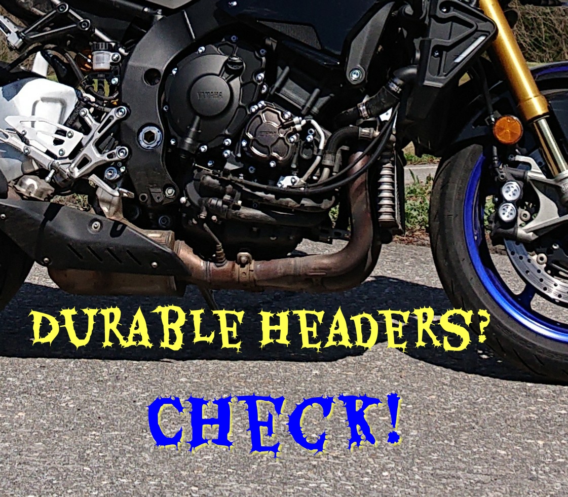 On an unplanned yet often forgotten test of durability, discovered that the headers are very hardy and more than up to the task of holding the weight of the bike should the front tyre cease to be doing that. 😉