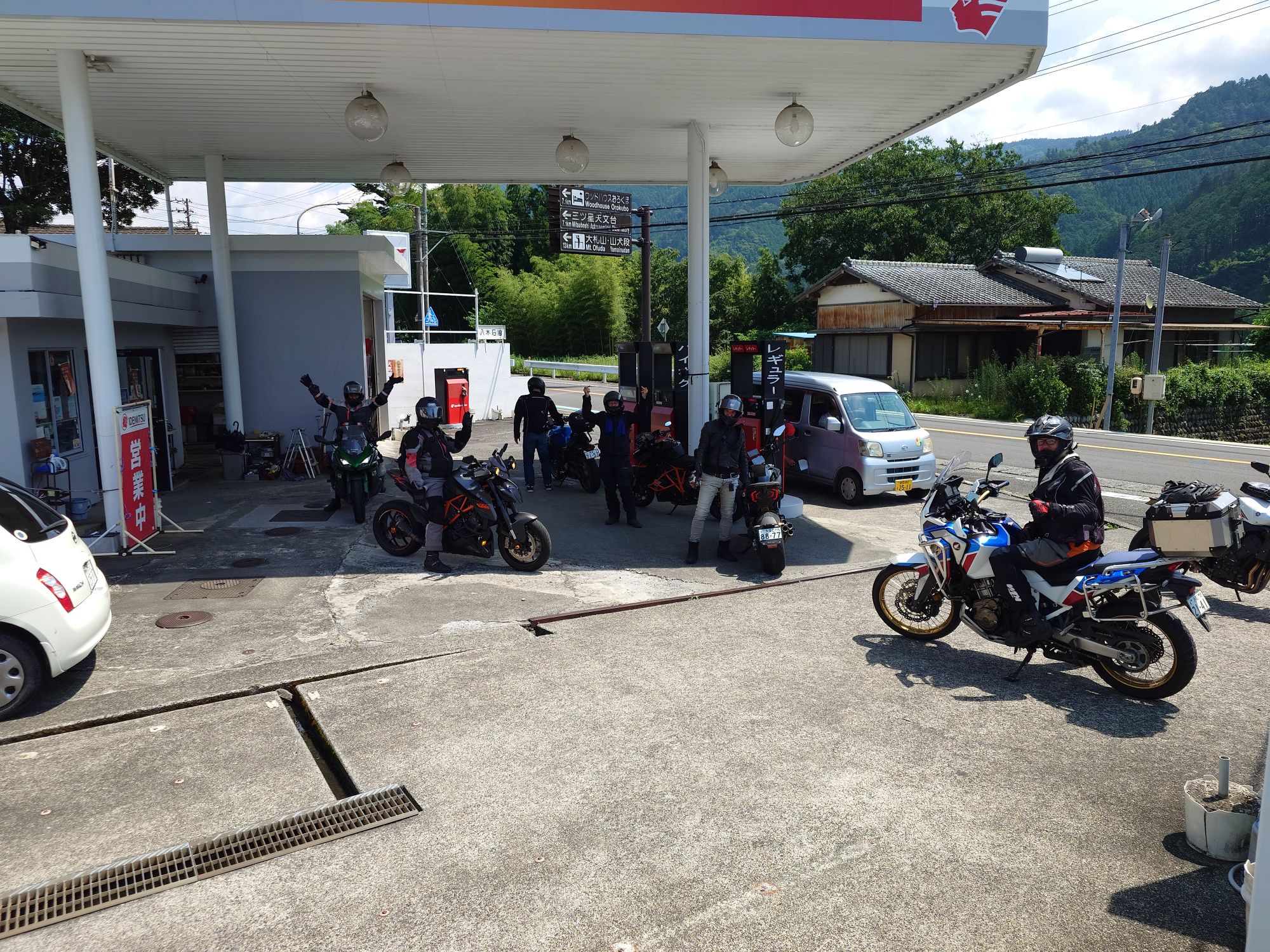 Like a pack of starved boar, they fell upon the teat of the accommodating Idemitsu. First time I’ve had an old man climb atop a box to be able to fill a bike’s tank. He did well though for an ancient one.