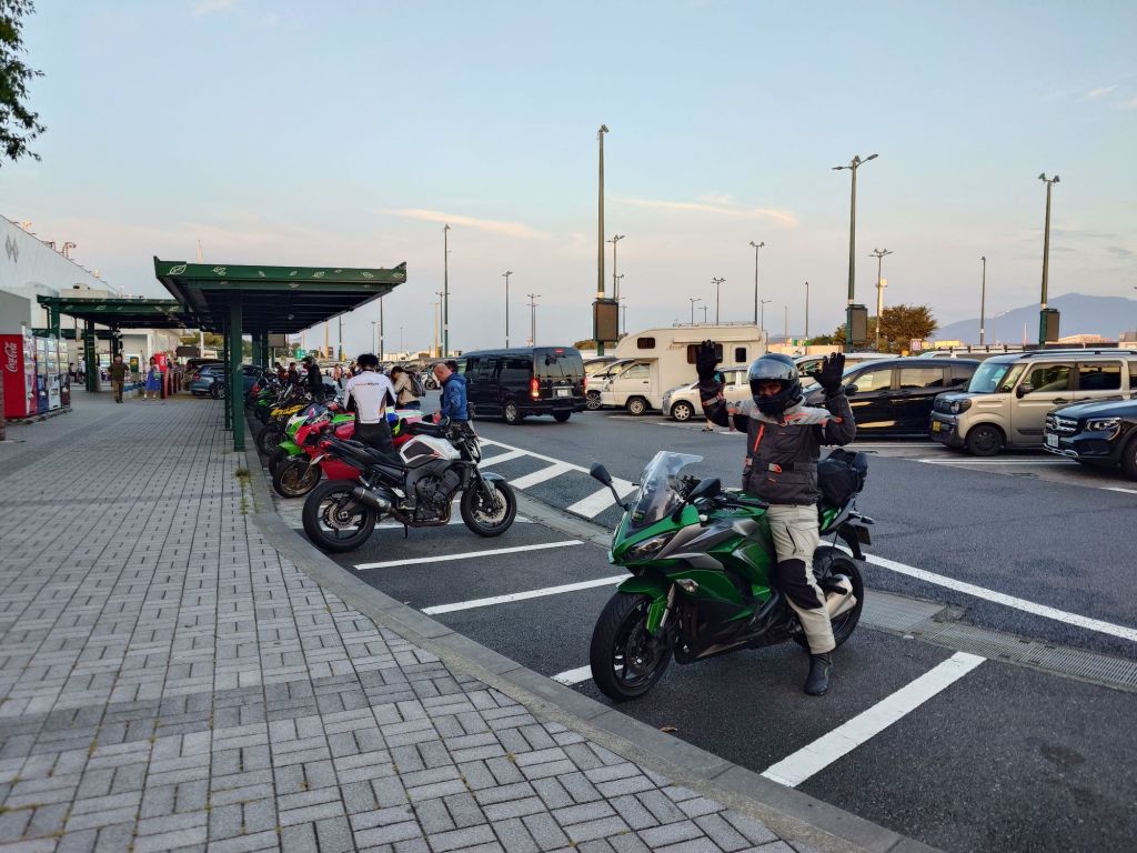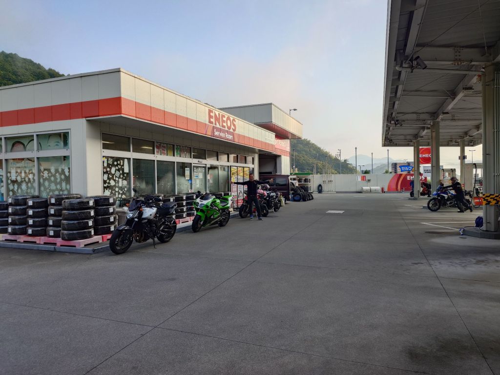135km of Shin Tomei Expressway later, we pulled in to feed the steeds and do running repairs.
