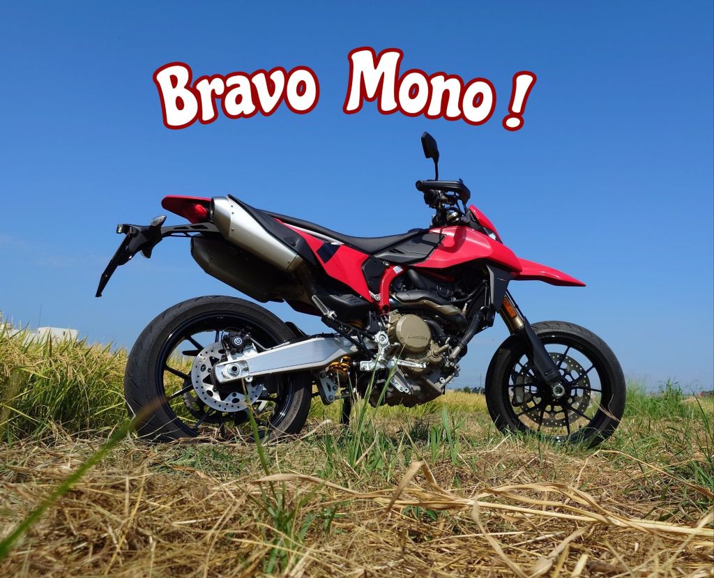 But this is the lighter Mono cylinder to that bigger Hypermotard’s duo of cylinders. It’s around 40kg lighter and a few centimetres taller at the hip line too. At 1,744,000yen though, it’s barely 150,000yen cheaper than big brother 950. Very close…