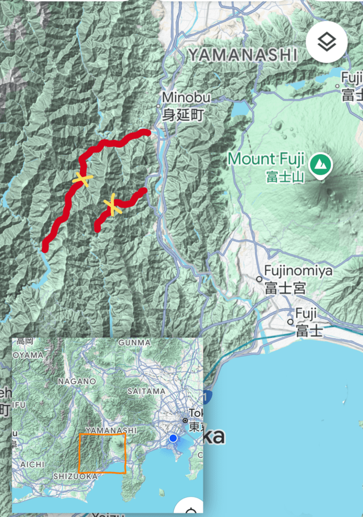With the Mountain Day Twistybutt just over a month away and route possibilities still swimming around in my melon, it was time to check off two gnarly passes that traverse the ridges separating Yamanashi and Shizuoka.