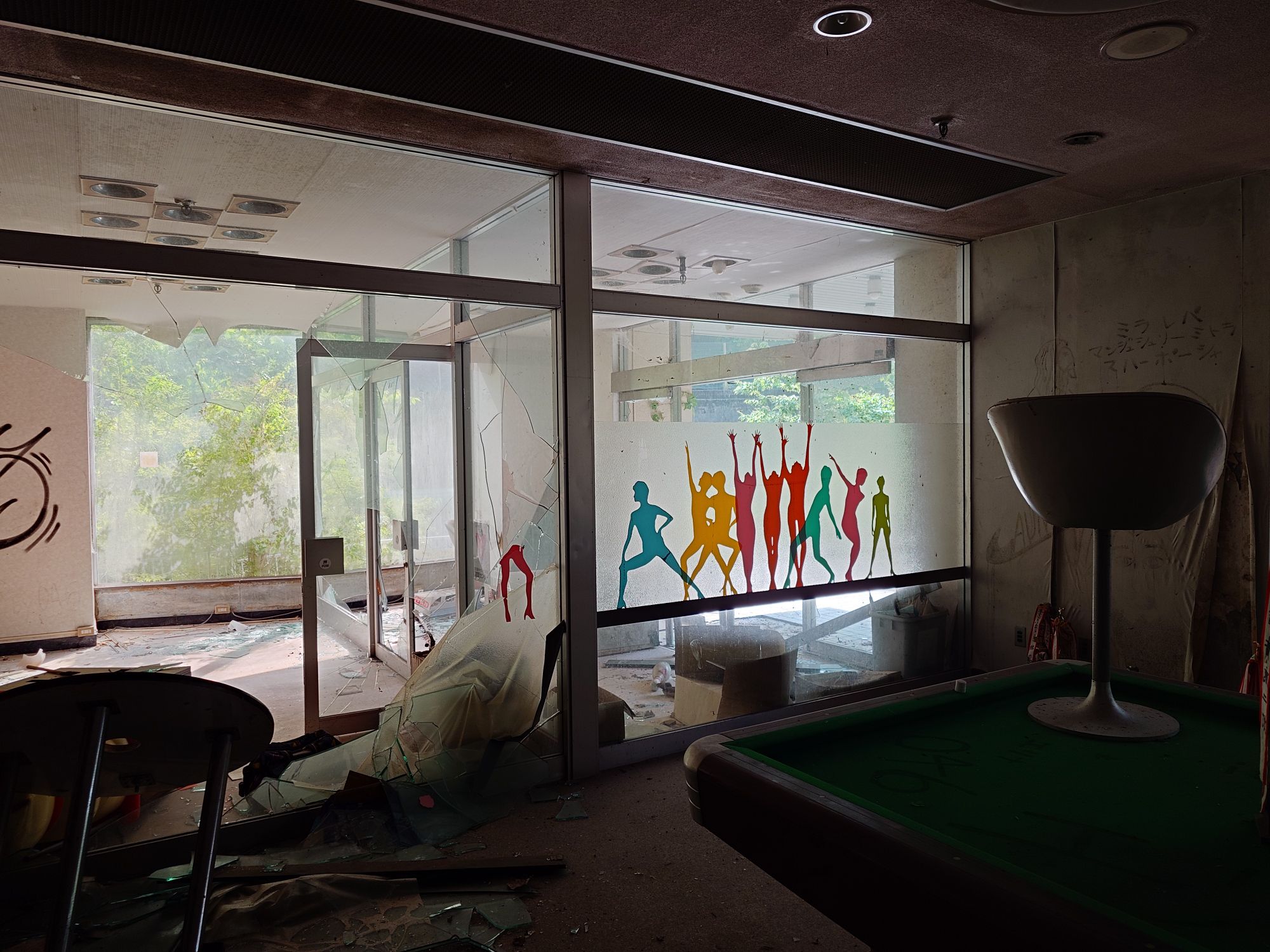 Inside was still remarkably furnished and accessorised. Vandalised and with a whiff of mould, too.