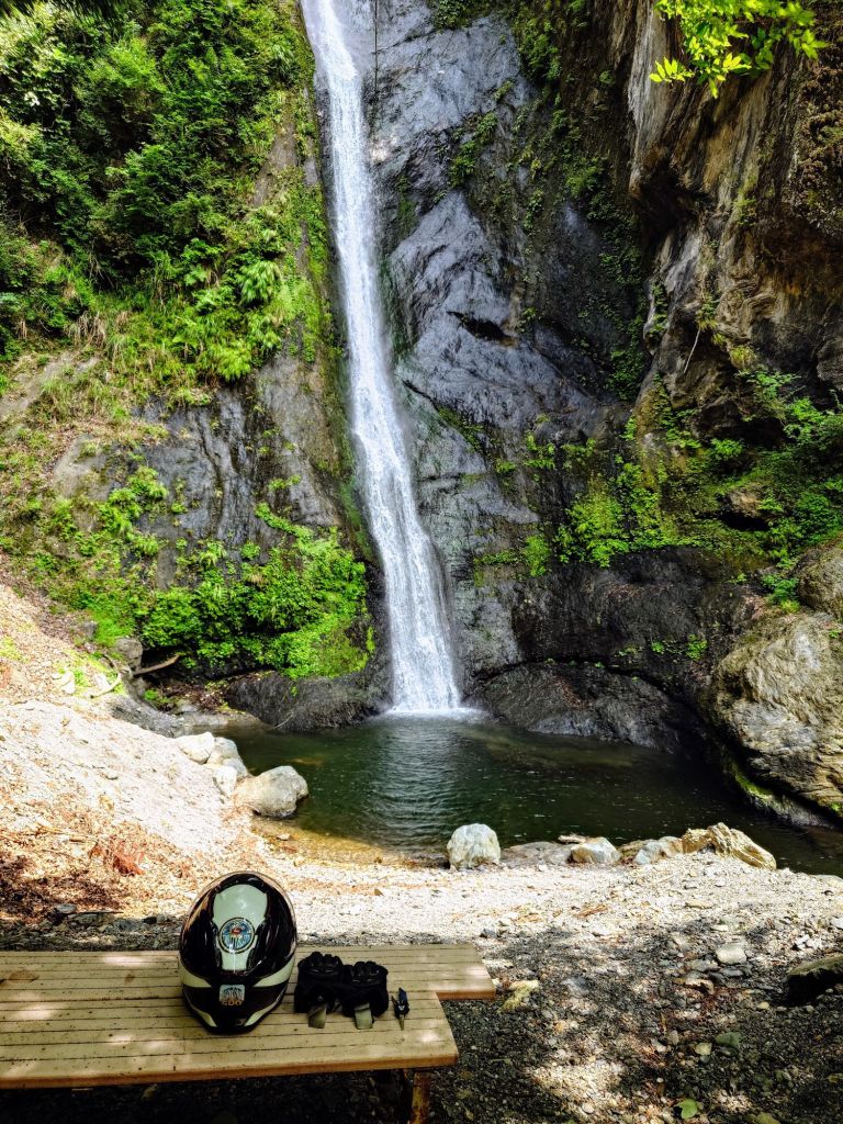 The Amehata River, Amehata meaning ‘rain field’, hosts a dam. A private dam for a mining and aluminium producing company. All the construction and signs of mining, both from the riverbanks and mountainsides, should have been a big enough hint. Not seeing any fisherman or birds on the vast lake and flowing streams should have done so, too. Guess I got lost in the twisties and waterfalls.
