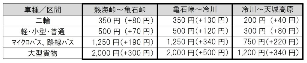 - Atami Pass to Kameishi Pass: 350 yen (+80yen)
