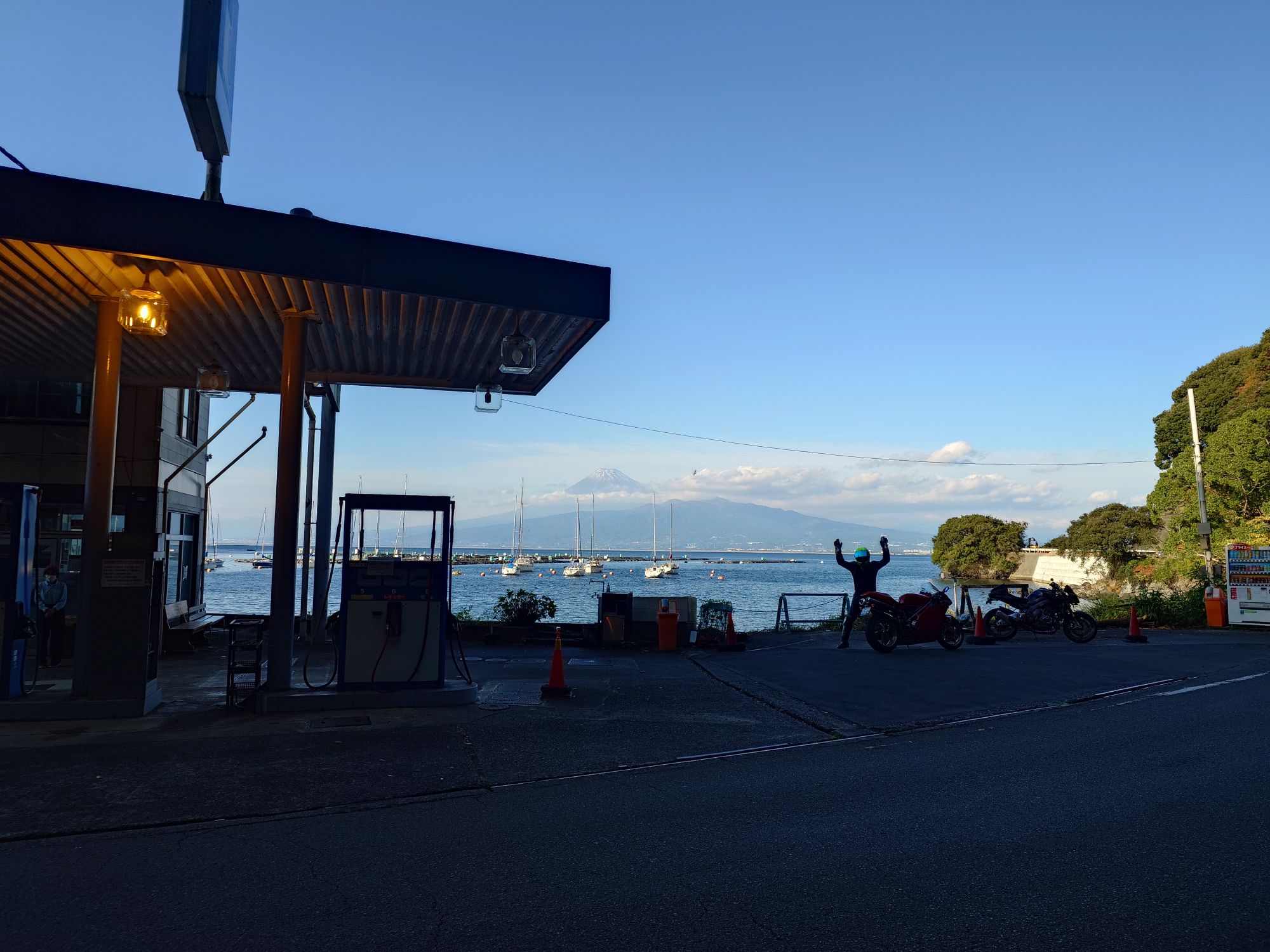 Our last stop by the coast and second fuel/gas stop at around 375km and Fuji was watching as the shadows began to grow…