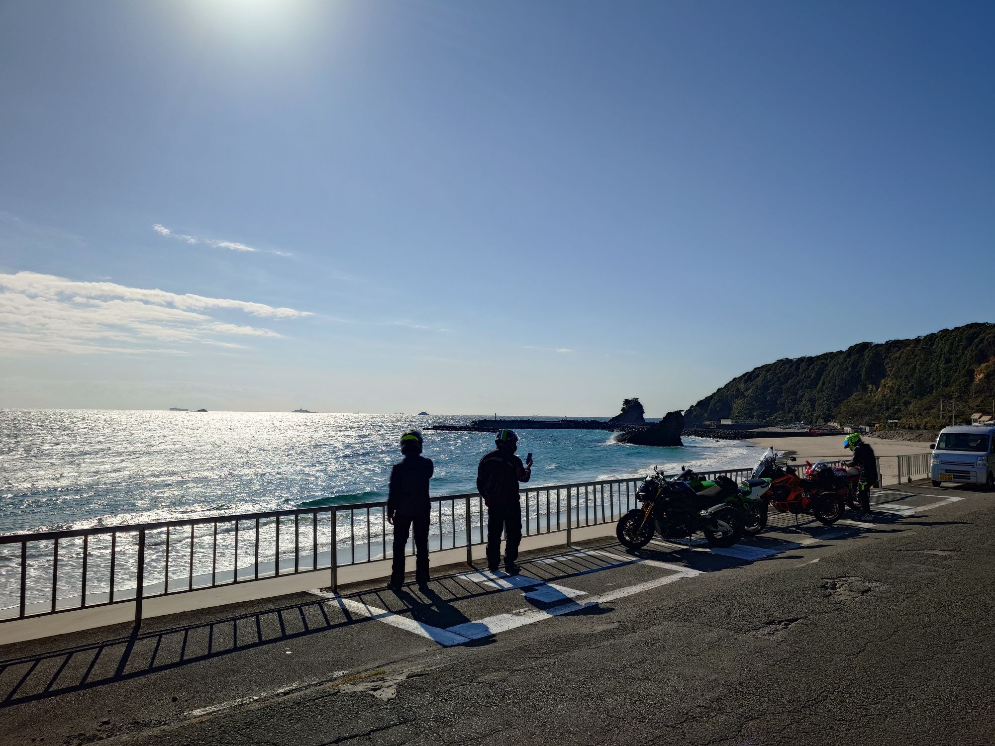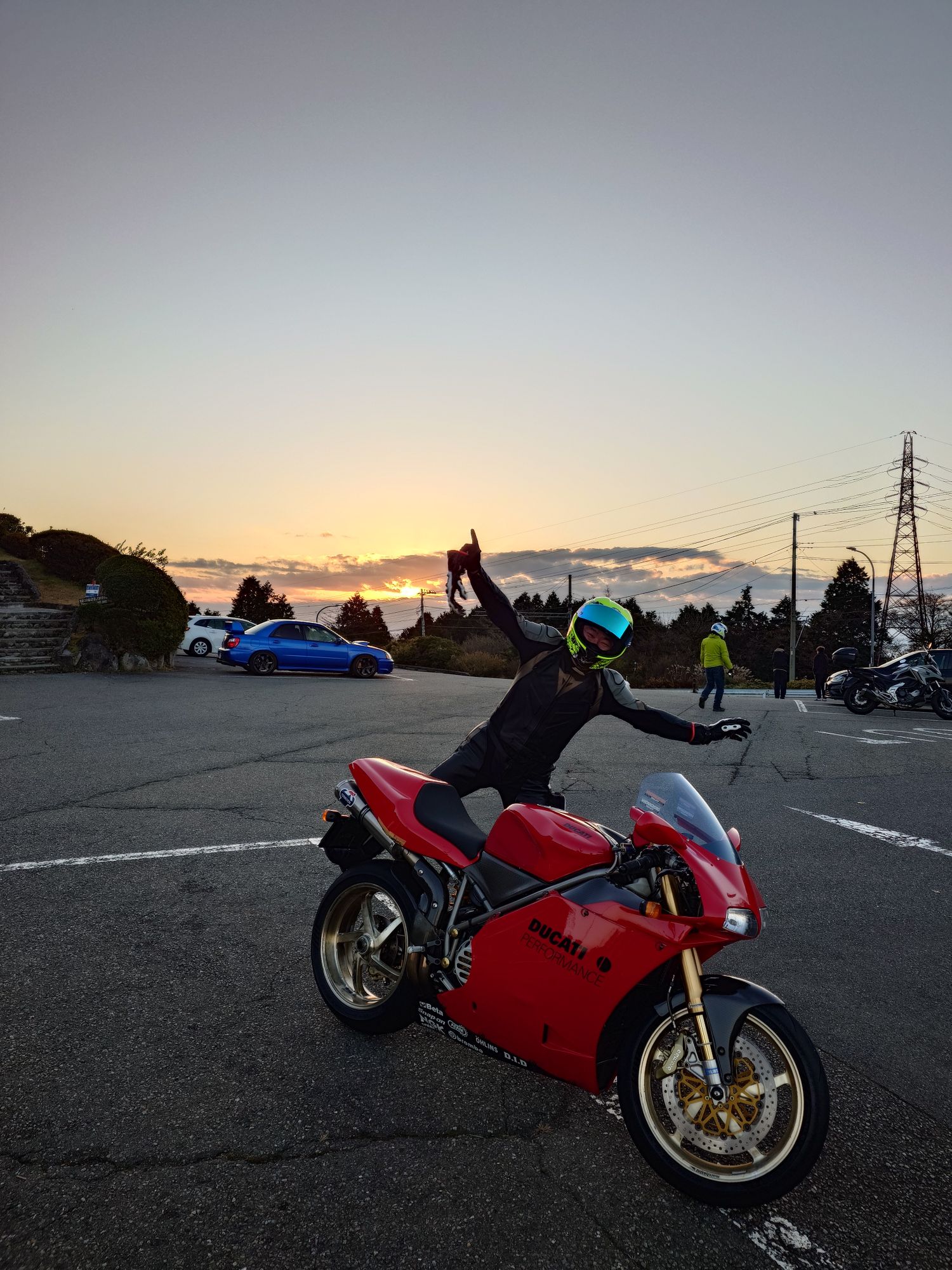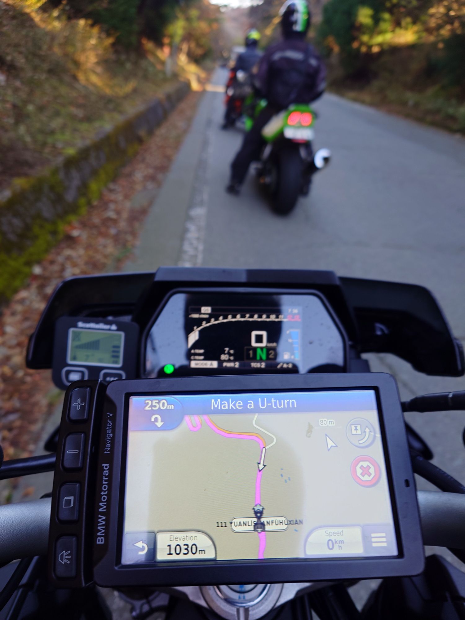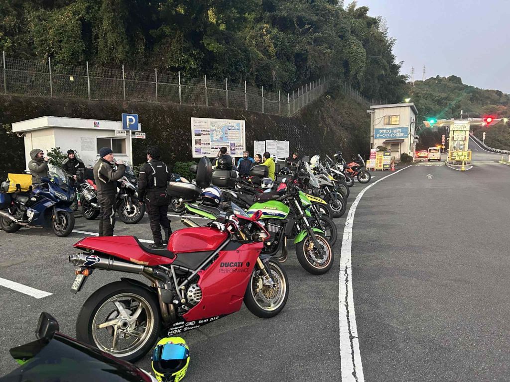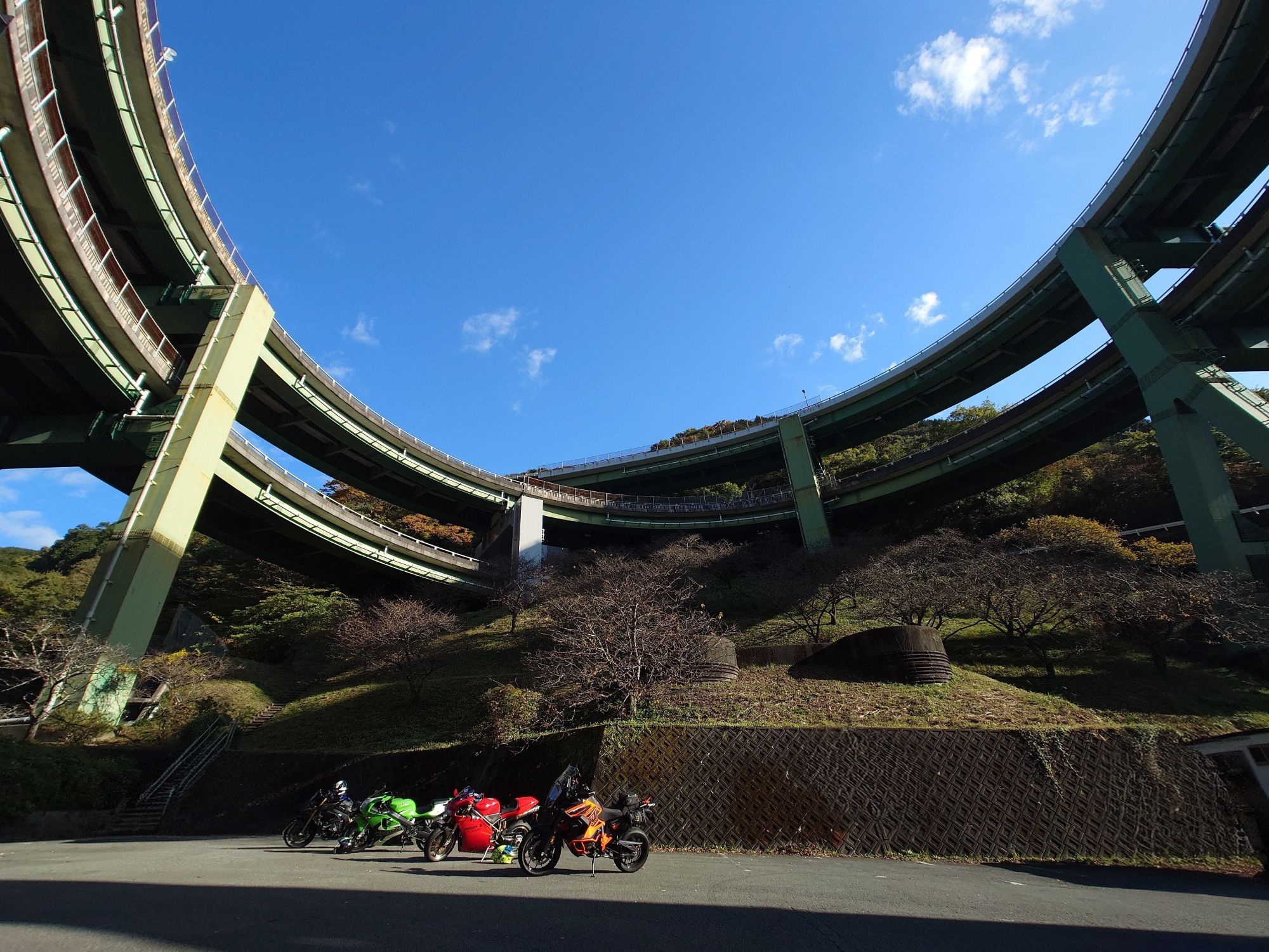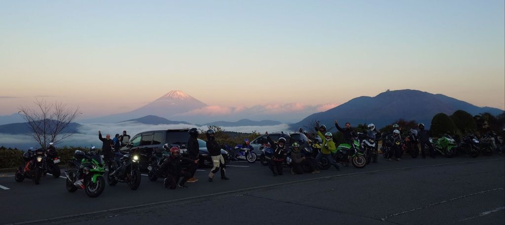 Cresting the highest regular road in Izu was a chilly 7°c but a fun road and after the U-turn at the top we got to see a trail of fellow Twistybutts sailing up. Great to see!