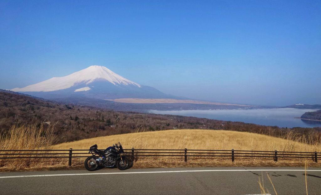 Early morning mist over Yamanakako and winter dried grass glowing under the early low sun under a bright blue sky. Perfecto!